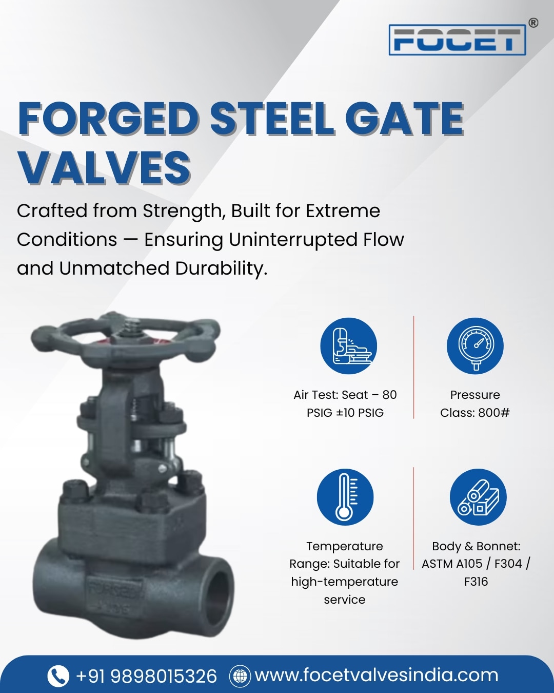 Top Cast Steel Gate Valves Manufacturers in Ahmedabad, Gujarat, India. When it comes to achieving complete fluid isolation with zero compromise on safety, the Cast Steel Gate Valve from Focet Valves Pvt Ltd stands out as a trusted solution. Designed to perform under high pressure and varying temperatures, this valve offers durability, precision, and efficiency in every application. Engineered in compliance with BS-1414/API 600 manufacturing standards, the valve is built to handle water, gas, and air across a wide range of industries. Whether for large-scale pipelines or critical process systems, it ensures uninterrupted operation and peace of mind for professionals who cannot afford downtime. Technical Specifications • Valve Size: More than 24 inch • Material: High-grade Cast Steel • Size Range: 15mm to 1050mm • End Connection: Flanged type for secure fitting • Inlet Diameter: 108mm to 812mm • Operating Media: Water, Gas, Air • Temperature Range: High, Medium, and Low temperature applications • Pressure Ratings: 150#, 300#, 600#, 900 • Minimum Order Quantity: 1 Piece This combination of specifications makes the industrial gate valve versatile enough to meet the most demanding operational requirements. Built for Industry Professionals The Focet Cast Steel Gate Valve is designed with end-users in mind. Professionals value: • Minimal Flow Resistance: The full-bore design ensures unobstructed flow when fully open. • Effective Sealing: Provides a leak-proof shutoff that protects pipelines and downstream equipment. • Rugged Durability: With cast steel construction, it withstands high pressures and temperatures without deformation. • Operational Reliability: Ideal for long service life with minimal maintenance needs. For plant operators, maintenance engineers, and system designers, this valve is a long-term investment in reliability. Your Partner in Flow Control At Focet Valves Pvt Ltd, we understand that every valve in a system matters. Our industrial gate valves are not just components—they are performance-driven solutions that support industries in achieving efficiency, safety, and cost-effectiveness. As a trusted gate valve manufacturer, exporter, and wholesaler in Ahmedabad, we deliver products that match international benchmarks while offering competitive prices. Where These Valves Are Used The cast steel gate valve is widely adopted across industries, including: • Water Supply Systems: Municipal distribution and irrigation networks. • Oil & Gas Pipelines: For isolation and flow control in refineries and transmission systems. • HVAC Systems: Managing hot or chilled water in heating and cooling plants. • Chemical Processing: Handling corrosive fluids with tight sealing performance. • Industrial Plants: For air, steam, and gas distribution where reliability is key. Why Choose Focet Cast Steel Gate Valve? • Manufactured with precision under strict quality standards. • High resistance to pressure and temperature variations. • Long service life with reduced maintenance downtime. • Suitable for multiple industries, ensuring application flexibility. • Available in a wide range of sizes to fit varied pipeline needs. Take Control with Focet Valves Pvt Ltd Upgrade your pipeline efficiency with the Cast Steel Gate Valve—trusted for reliability, durability, and world-class performance. 📞 Contact us today for the best industrial gate valve prices in Ahmedabad and expert guidance for your next project