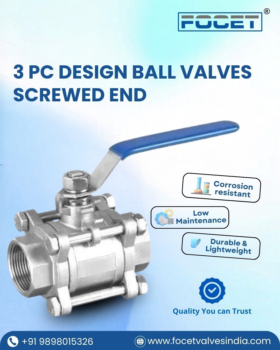 FOCET VALVES PVT. LTD is a trusted name in precision valve manufacturing, offering durable and high-performance flow control solutions. As a leading 3 PC Design Ball Valves Screwed End Manufacturer, the company focuses on quality engineering, robust construction, and reliable performance. Recognized as a reputed 3 PC Design Ball Valves Screwed End Manufacturer in Ahmedabad, they ensure strict quality standards and advanced manufacturing practices.