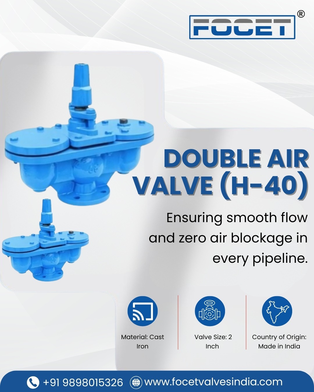 #DoubleAirValve #H40Valve #IndustrialAirValves #PipelineSafety #WaterSupplySystems #IrrigationSolutions #WastewaterManagement #FocetValves #AhmedabadManufacturers #GujaratIndustry #CastIronValve #AirReleaseValve