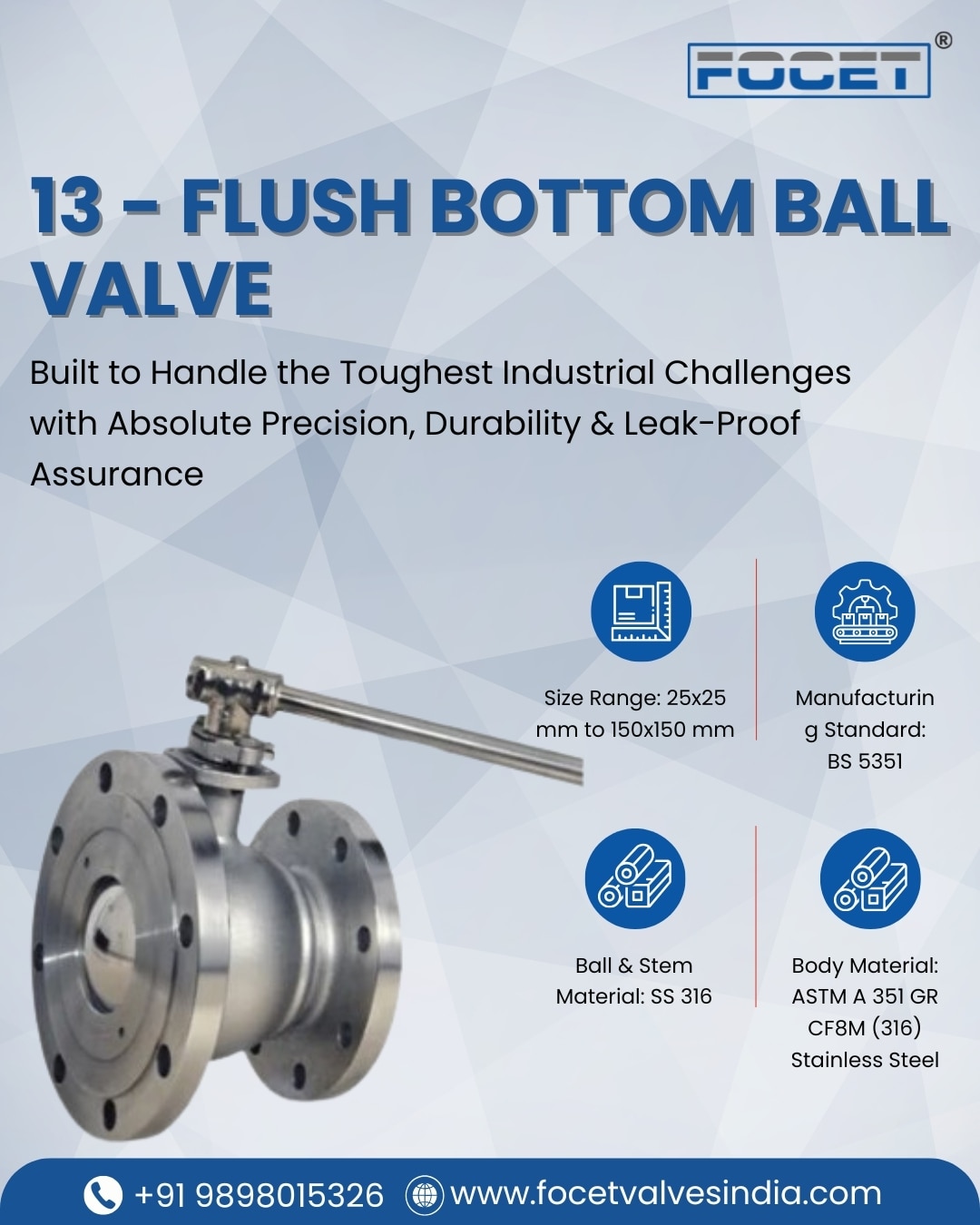 At Focet Valves Pvt. Ltd., every valve is designed with precision and built to last. Our 13 - Flush Bottom Ball Valves ensure: